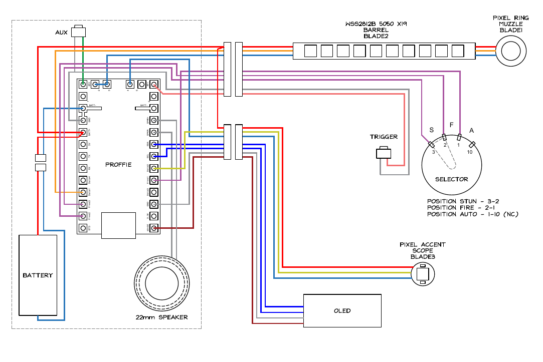 I have an E11 blaster kit I need to start on and plan the electronics out. It came with a fire selector switch in the grip. I has 4 pins - G, 1, 2, 3. (I assume, I need to meter it)