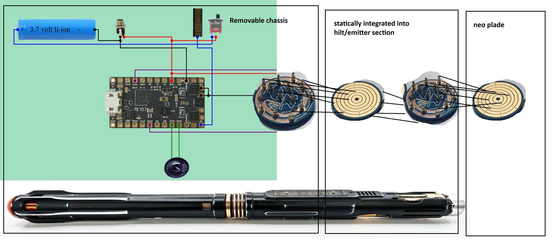 This is where I am getting confused, Smugglers Out post makes the 3d printed chassis for this saber and they have a build list. One of those parts is a S.O. 14-Pin Pixel/Switch Rotary PCB Set and this will be a removable chassis build.