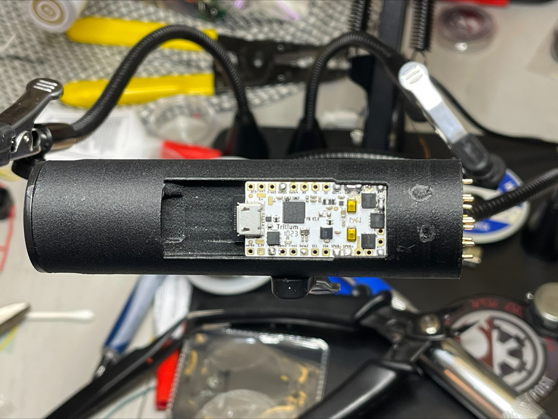 Thanks for the reply! I checked the serial monitor and I have attached what I am seeing while the saber is on and the battery is in the chassis. While I was testing, I noticed that the blade would ignite until the board started beeping then it would shut off and not light back up. Also, I can twist to ignite while the battery is only powering the board and the speaker inside of the lower chassis and it would still give the low battery warning and never stay on and “humming”. I have attached the results of the serial monitor, the lower chassis, and a close-up of the board itself. If you need to see the other side of the board just let me know and I can de-solder everything and take it out.
