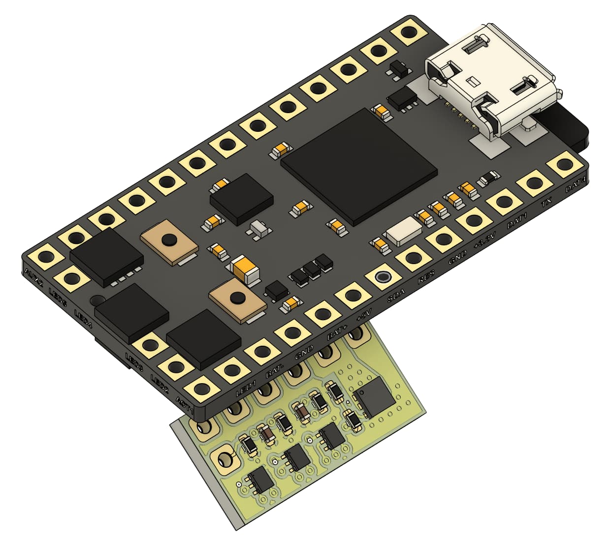The Batt+ pad is located under the Proffieboard 5V pad, which could be an issue depending on clearances during soldering.