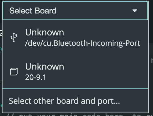 The device is listed in the usual Arduino port listing on macOS.