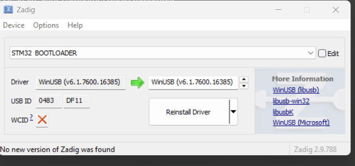 i also reinstalled the drivers in zadig
