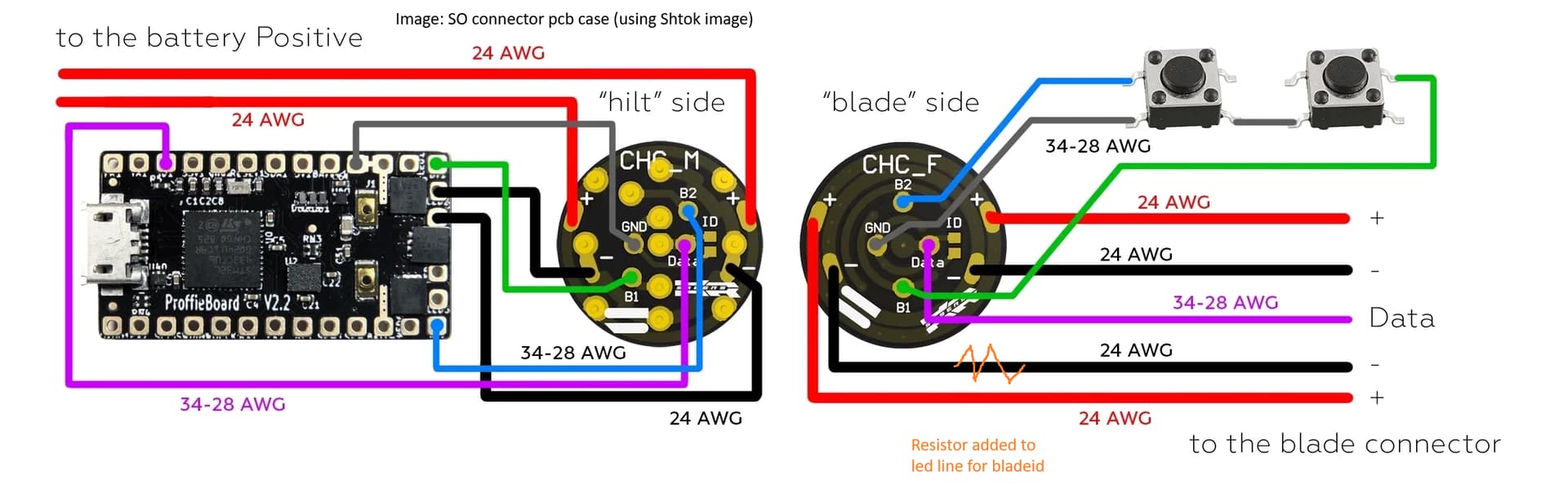 If I used an S.O. pcb with a second data pad, where would the resistor be connected to to get bladeid to work? Would it be between the led wire to the pixel connector? I could also wire a data wire to use as blade detect but would there be any use for it?