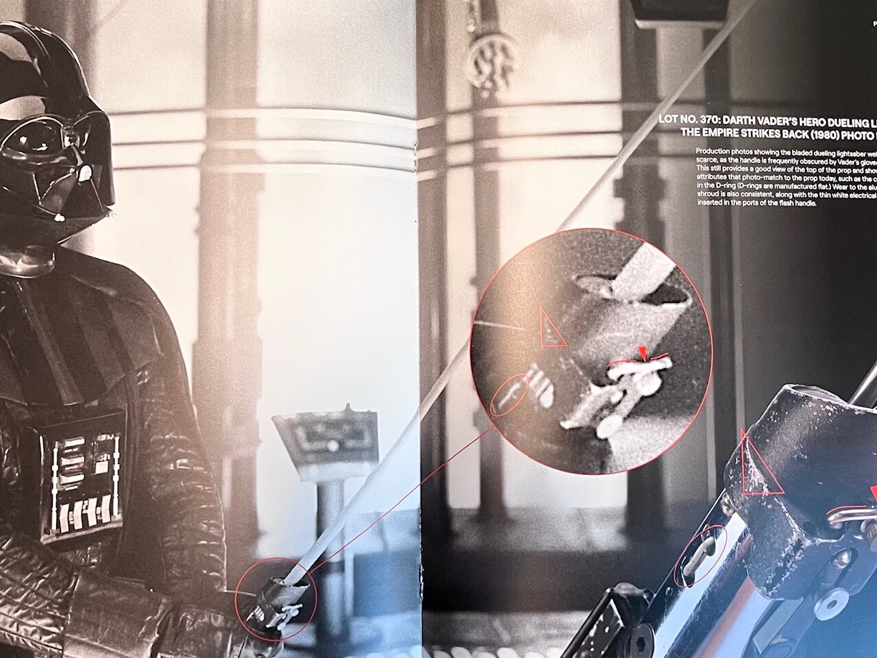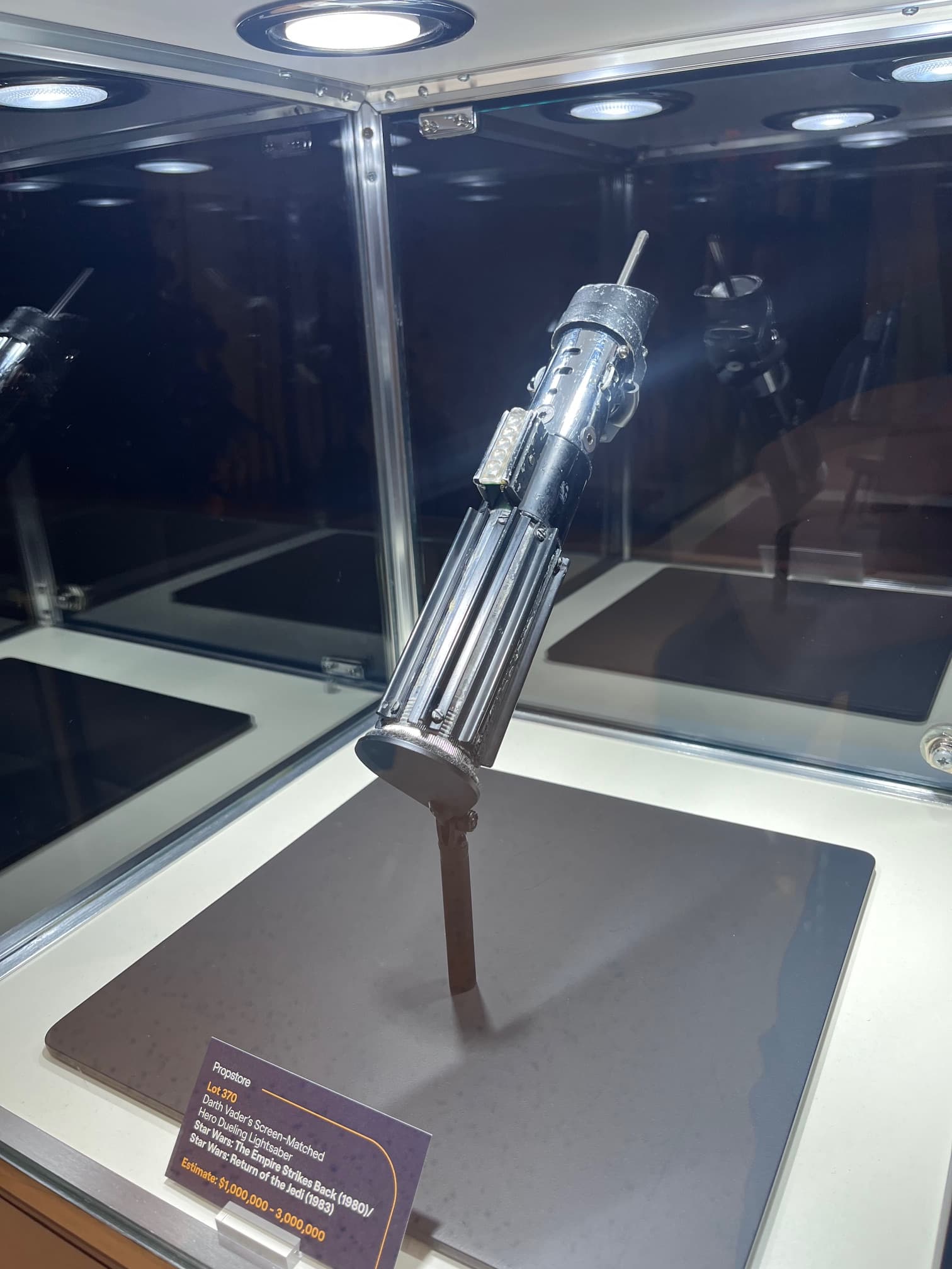 I’m sure everyone has heard that the dueling, screen used, hand chopping Darth Vader saber is going up for auction: